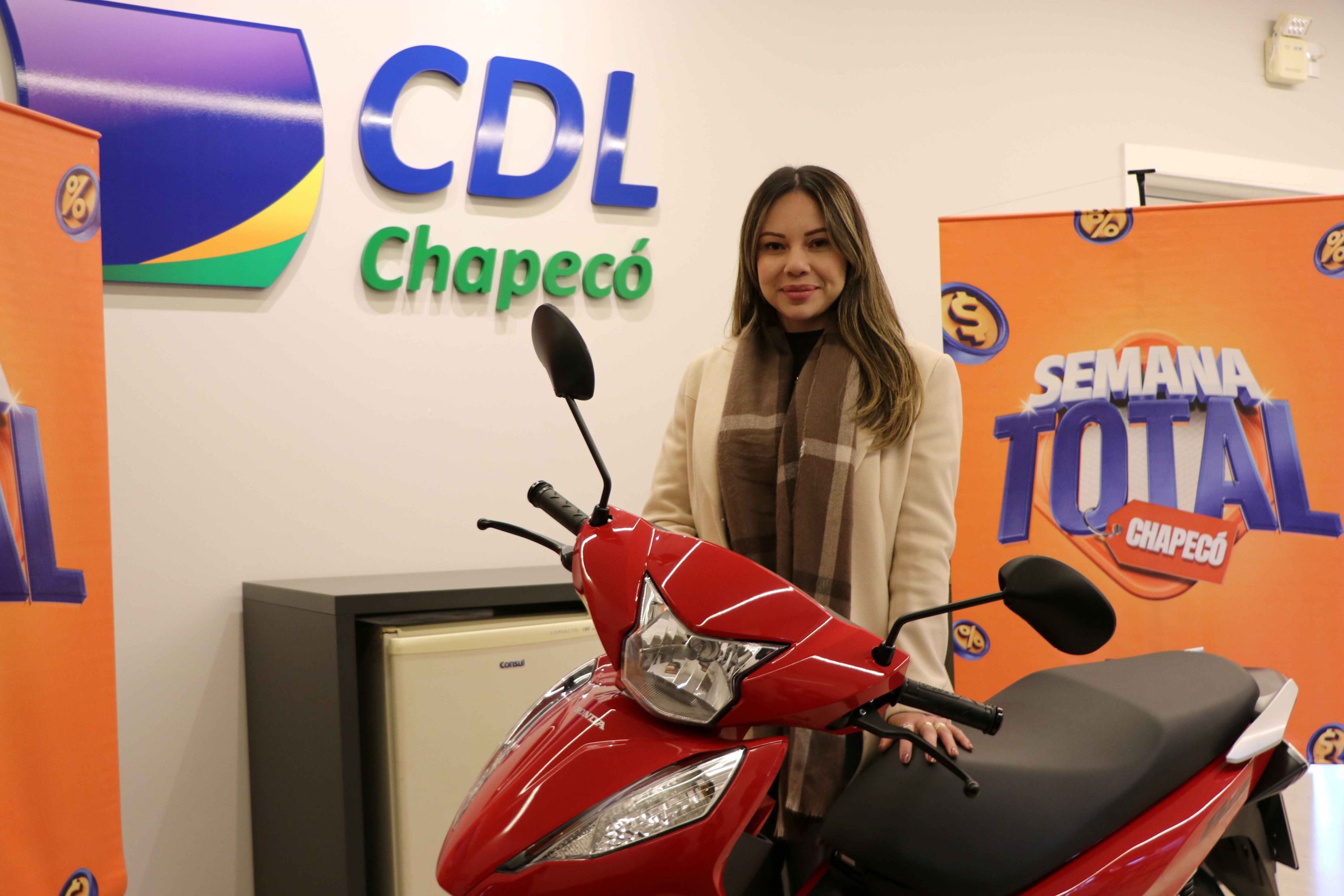 O contato com o comércio já faz parte da rotina de Vanessa Gonçalves de Paula, de 29 anos. Ela trabalha há oito anos em uma ótica. Sua habilidade com as vendas foi reconhecida na sua trajetória profissional. De vendedora, a chapecoense passou a ocupar o cargo de gerente. Apesar de seu trabalho tê-la colocado em posição de destaque, neste mês de junho, Vanessa usufruiu de outra experiência no comércio: a de cliente. Com muita sorte, foi contemplada pela CDL Chapecó (Câmara de Dirigentes Lojistas), na Semana Total Premiada. Nessa quinta-feira (25), retirou na entidade a sua nova Honda Biz 0 km.